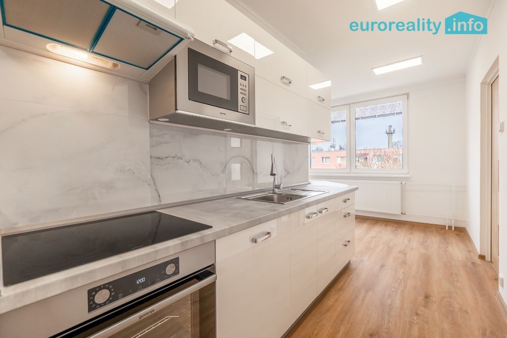 Součástí prodeje je také moderní kuchyňská linka se zabudovanými spotřebiči, konkrétně: