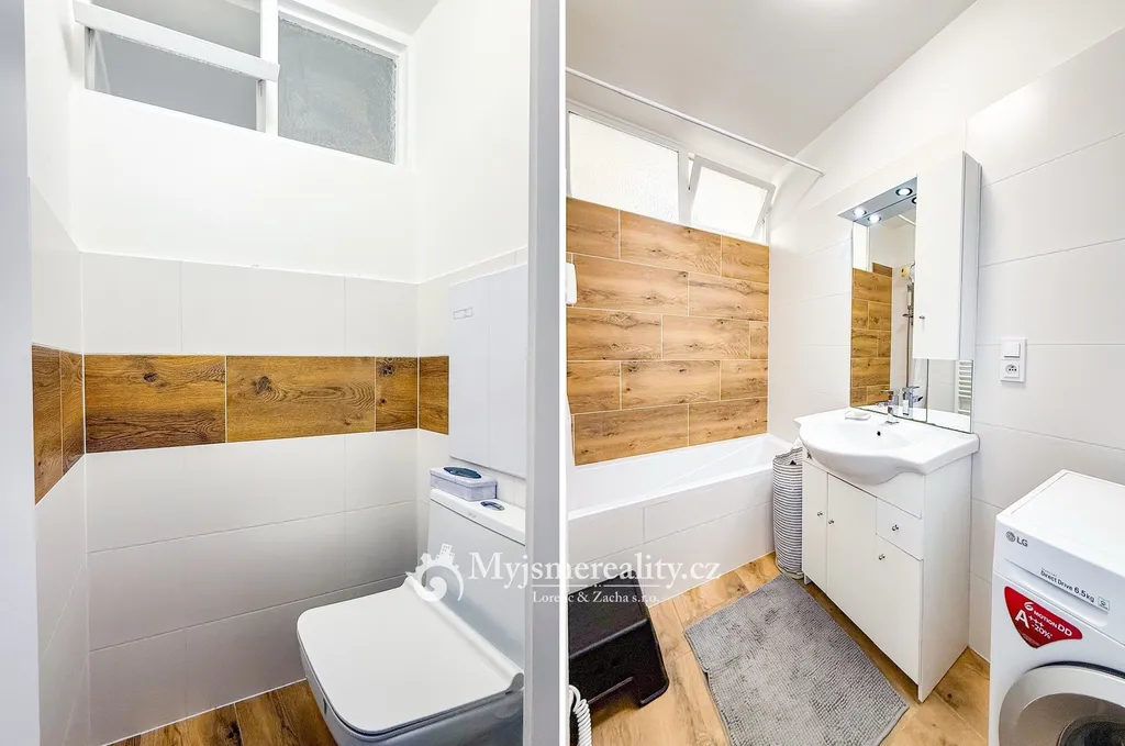 Byt se nachází ve 2. nadzemním podlaží a nabízí praktickou dispozici: předsíň, ložnici, obývací pokoj, samostatnou kuchyni částečně propojenou s obývacím pokojem, koupelnu s vanou a samostatné WC. Součástí bytu je kuchyňská linka s vestavnými spotřebiči a vestavné šatní skříně. V roce 2024 prošel byt kompletní rekonstrukcí včetně nových rozvodů elektřiny, vody a odpadů. Vytápění i ohřev vody jsou centrální. K bytu náleží také sklep (cca 2 m²).