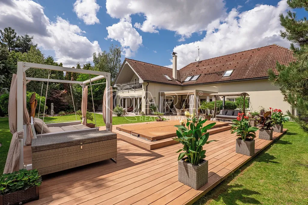 V klidné vilové části obce se nachází dům s plochou 540 m², situovaný na pozemku o celkové výměře 1 749 m², z toho 1 487 m² tvoří parkově upravená zahrada, která poskytuje maximální soukromí a prostor pro relaxaci i společenská setkání.