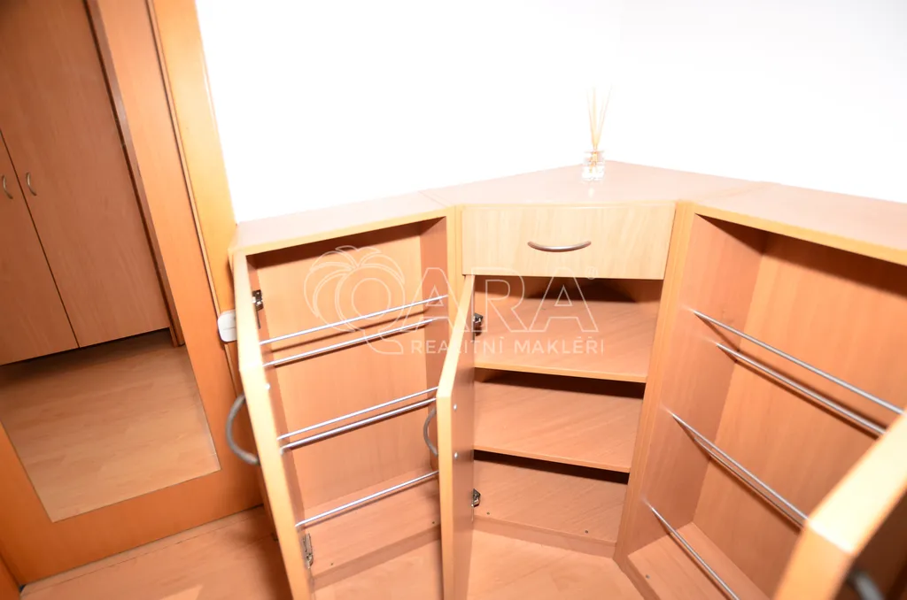 Byt k pronájmu se nachází v 6. nadzemním podlaží v domě s dvěma výtahy. Obytná plocha bytu 38,33 m2, 2 pokoje, ložnice 19,4 m2 a kuchyně 12,1 m2, předsíň 3,8 m2, koupelna s WC. Byt po nekuřácích. Dům po rekonstrukci v roce 2009, zateplený, vyměněné stoupačky, plastová okna.