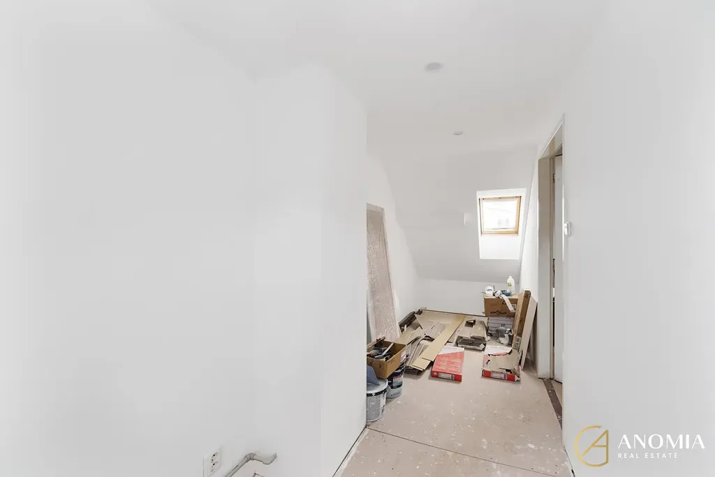 Srdcem domu je světlý obývací prostor propojený s plně vybavenou kuchyní. Velká okna a jihovýchodní orientace zajišťují dostatek přirozeného světla během celého dne. Dominantním prvkem interiéru jsou nová litinová krbová kamna, která vytvářejí příjemnou atmosféru a dodávají prostoru charakter. V přízemí se dále nachází ložnice s prostornou vestavěnou skříní, moderní koupelna s vanou, samostatné WC a technická místnost. Komfort bydlení doplňují kvalitní vinylové podlahy.