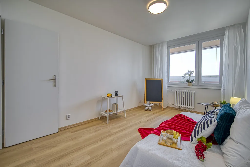 Nabízíme k pronájmu krásný byt 3+kk se zasklenou lodžií, po kompletní rekonstrukci. Byt se nachází ve 3. nadzemním podlaží (2. patře) panelového domu s výtahem a disponuje novou kuchyňskou linkou se sklokeramickou varnou deskou, elektrickou pečící troubou, myčkou a digestoří. V koupelně se nachází vana, umyvadlo se skříňkou a skříňka se zrcadlem. Toaleta je samostatná. Součástí pronájmu je i komora ve společných prostorách domu. Byt není vybaven nábytkem. Nájemné zde činí 15 000,- Kč, záloha na služby 2 500,- Kč pro 1 osobu + 500,- Kč každá další osoba. Vratná kauce je 25 000,- Kč. Při rezervaci se platí provize realitní kanceláři ve výši 18 000,- Kč. Elektřina se přepisuje na nájemce. Byt je volný ihned. V případě zájmu o prohlídku či více informací neváhejte kontaktovat makléře.