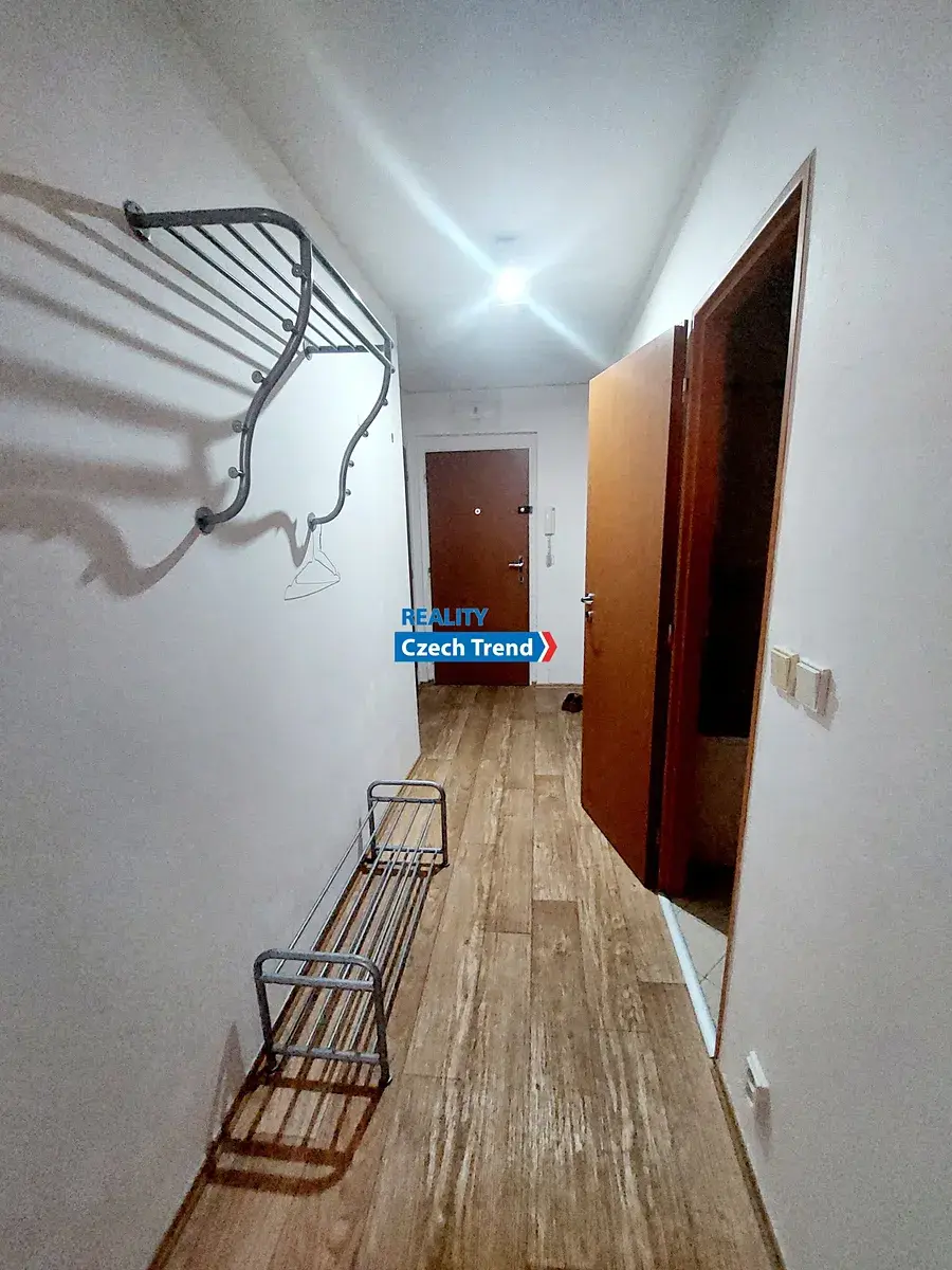 Přímo v bytě je praktická komora se šatnou, kterou jistě ocení budoucí nájemci. Byt se nabízí částečně zařízený. Kuchyňský kout je vybaven horkovzdušnou troubou, mikrovlnnou troubou, sklokeramickou varnou deskou, digestoří a lednicí s mrazákem. V obývacím pokoji se nachází skříně a v ložnici prostorná šatní skříň.
