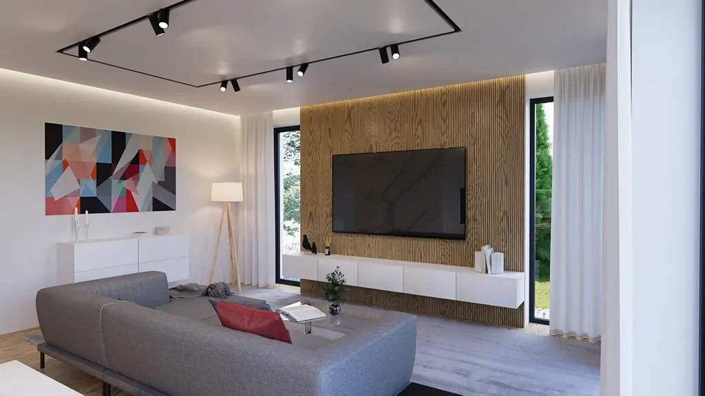 • Prostorný obývací pokoj s kuchyňským koutem – vzdušný, světlý prostor pro celou rodinu