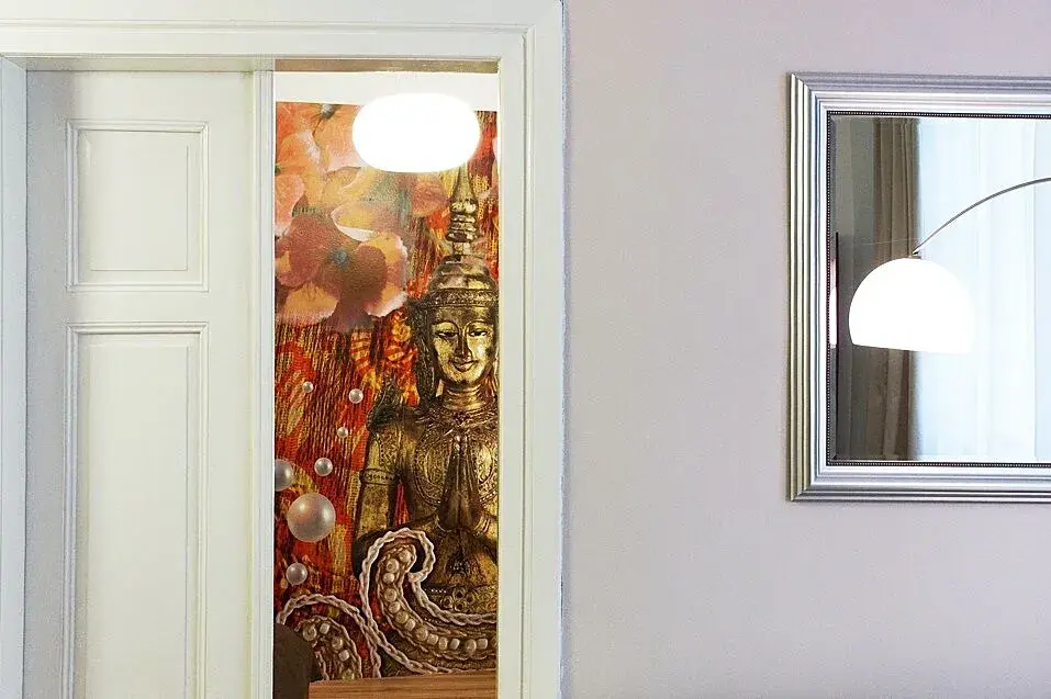 Dominantou bytu je prostorný obývací pokoj, který je prakticky rozdělen na tři funkční části – obývací zónu, jídelní část a pracovní kout. Oddělení pracovny od obývací části je řešeno velmi vkusně a minimalisticky pomocí skleněné příčky s posuvnými dveřmi, která zachovává vzdušnost prostoru a zároveň vytváří klidné místo pro práci. V případě potřeby je možné příčku jednoduše odstranit a celý prostor opět otevřít.