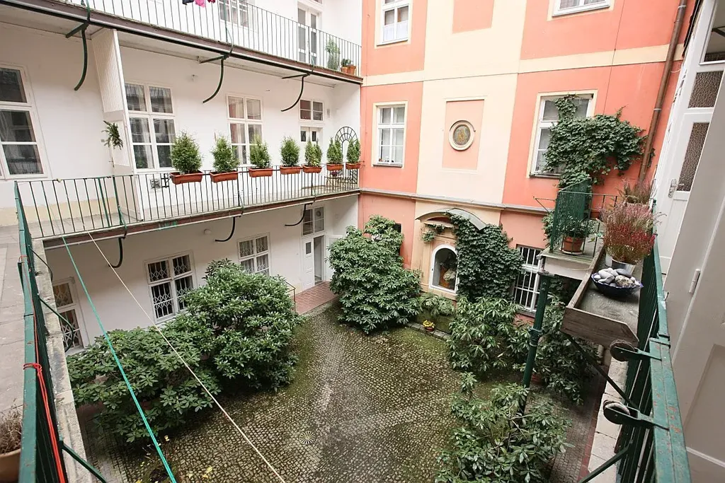 Dům má příjemnou historickou atmosféru a své jedinečné genius loci. Krásné pavlače orientované do vnitrobloku s květinovou výzdobou vytvářejí klidné a velmi příjemné prostředí pro bydlení.