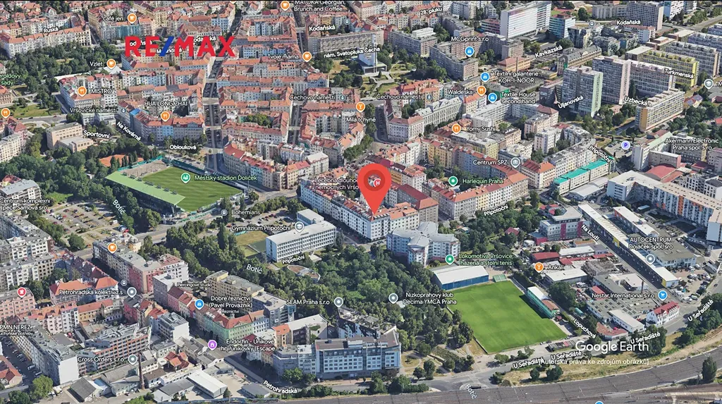 V bezprostřední blízkosti domu se nachází například Gymnázium Přípotoční, přes ulici je fotbalový stadion Bohemians. V docházkové vzdálenosti najdete také nákupní centrum Eden a fotbalový stadion.
