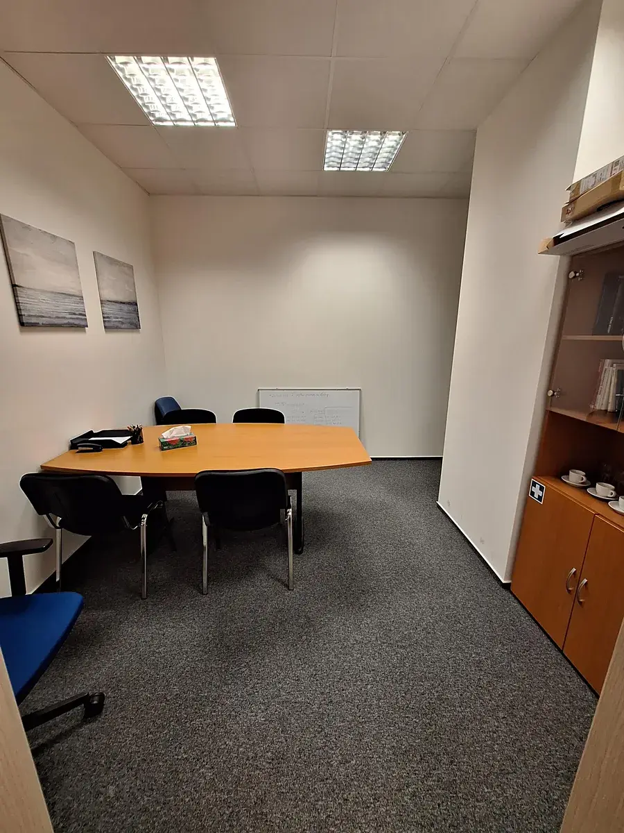 Cena nájmu činí 21 000 Kč měsíčně a je kompletní. Pronájem zahrnuje i paušální služby, kromě internetu, který si nájemce řeší sám. Výhodou je, že nájemce neplatí provizi. Kanceláře budou volné od 1. června 2026.