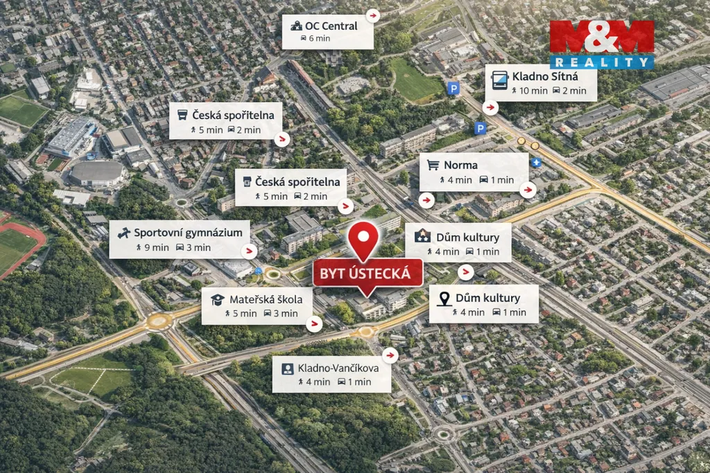 Nabízíme k prodeji byt o dispozici 3+1 s celkovou plochou 64 m², který se nachází v 7. patře zatepleného panelového domu s výtahem v ulici Ústecká, v oblíbené lokalitě Kladno – Sítná.