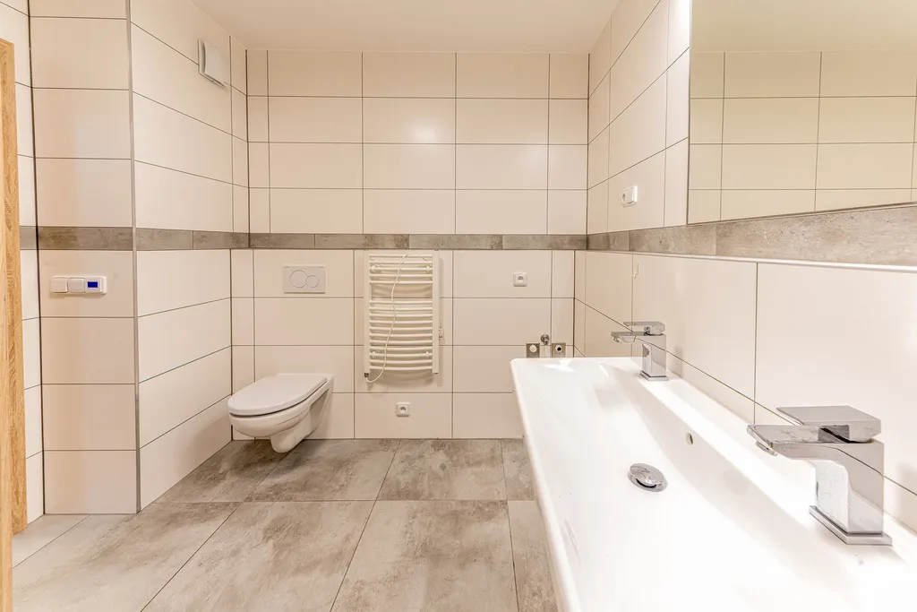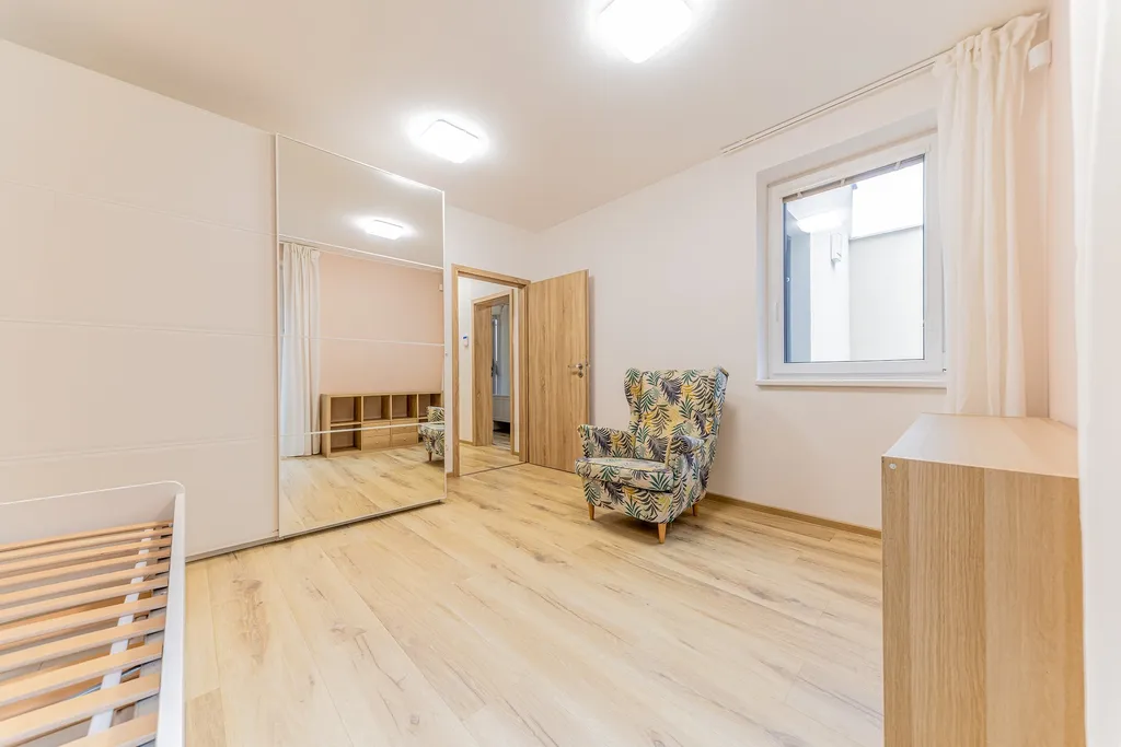V suterénu domu (60 m²) je k dispozici prostorný obývací pokoj s kuchyňskou linkou a ložnicí, obě místnosti s přímým vstupem do zahrady skrze velkorysou terasu (27 m²) s východní orientací, kde si v letních dnech vychutnáte ranní slunce a příjemné posezení s rodinou či přáteli. Pro milovníky wellness je zde v rámci prostorné koupelnové části moderní sauna se sprchovým koutem a WC, která umožňuje regeneraci a odpočinek přímo v pohodlí domova. Součástí suterénu je také samostatná komora, chytře řešený úložný prostor pod schodištěm a technická místnost s dalším úložným prostorem.