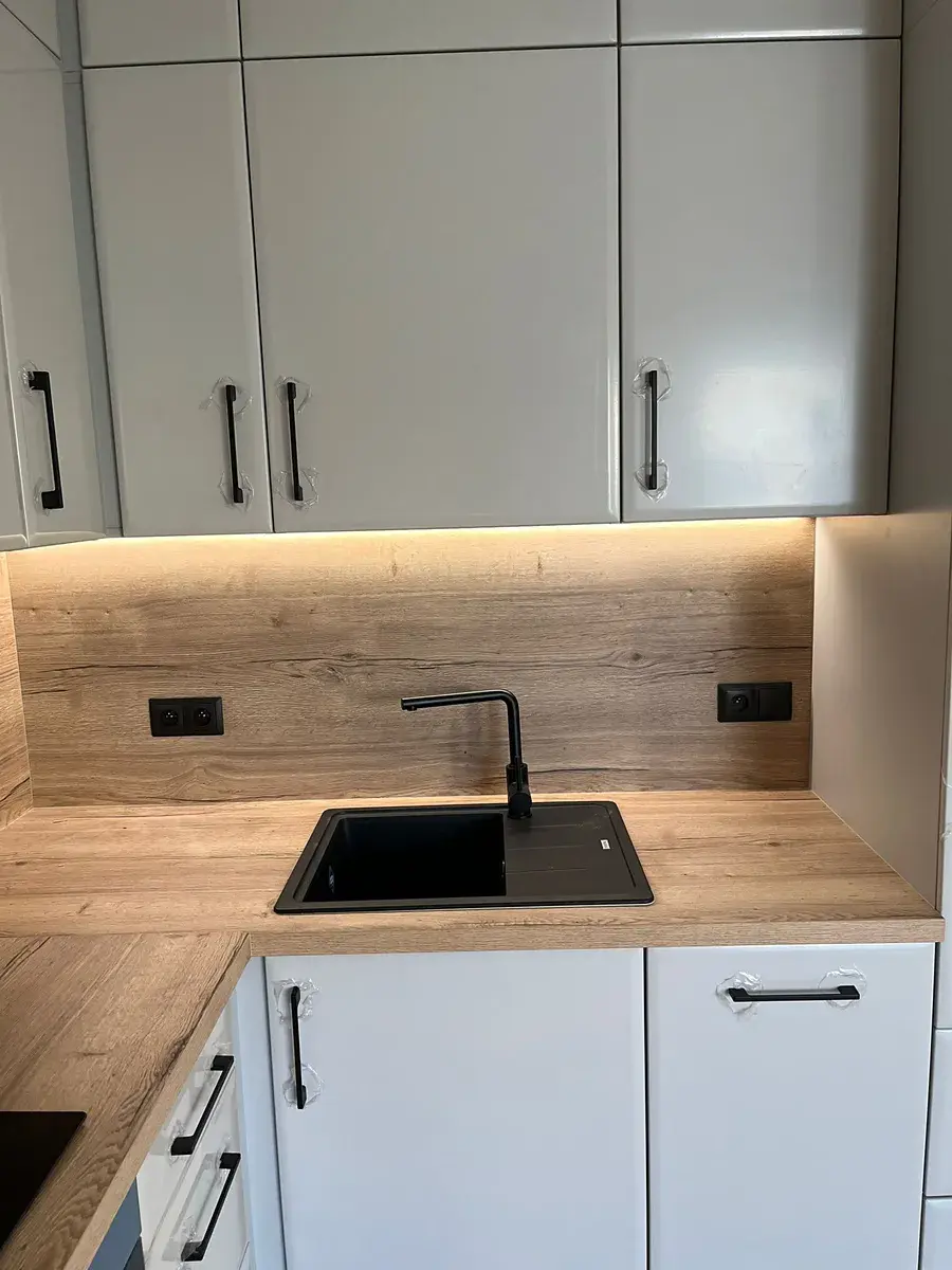 Vše je nové – kuchyňská linka včetně spotřebičů (vestavěná lednice s mrazákem, vestavěná horkovzdušná trouba a indukční deska), osvětlení, venkovní žaluzie na elektrické ovládání, šatní skříň. Dále dřevěná podlaha v celém bytě, elektronický zvonek s kamerou pro otevírání dveří, telefonní a internetové přípojky.