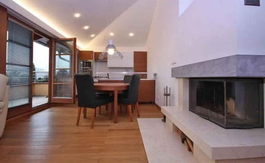 Byt se nachází ve 2. patře čtyřpatrové vily. Celková plocha bytu je 98 m2 + terasa 35 m2. Dominantou bytu je obývací pokoj s kuch. koutem a krbem, ze kterého je přístup na terasu. Ložnice jsou navzájem neprůchozí. Koupelna je vybavena vanou, umyvadlem a WC, v bytě se nachází další samostatné WC. Podlahy jsou z dubového dřeva, stejně jako vnitřní dveře. Byt je vybaven kuch. linkou včetně zabudovaných spotřebičů a je částečně vybaven nábytkem. Vytápění a ohřev teplé vody zajišťuje plynový kotel. K bytu náleží jedno venkovní parkovací stání. Zálohy na služby a energie je 4.000 Kč/měs a je každoročně vyúčtována dle spotřeby. Majitel požaduje kauci ve výši 2 nájmů, provize činí 35.000 Kč.