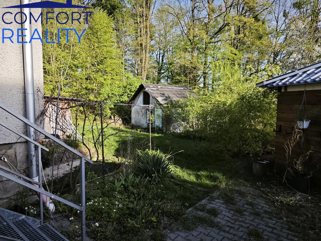 Součástí nemovitosti je také zahrada se zděnou kůlnou, která je v současnosti ve zhoršeném technickém stavu. Část této stavby zasahuje na sousední pozemek, a bude proto nutné provést její částečné odstranění a následnou rekonstrukci.