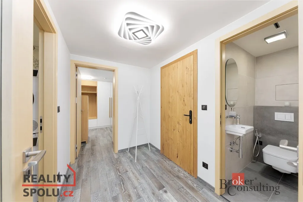 Dispozice 4kk nabízí 100 m² promyšleného prostoru + 2 balkony. Možnost použít odděleně jako 3kk a 1kk s vlastním vchodem, kuchyňskou linkou, koupelnou a toaletou. Vhodné pro krátkodobé pronájmy. Kompletně luxusně vybaveno do posledního detailu. Podlahové vytápění, předokenní žaluzie, dřevěné podlahy (bahenní dub), vestavné skříně v dýze a plně zařízené koupelny s pračkou i sušičkou vytvářejí komfort, který oceníte v každém ročním období.