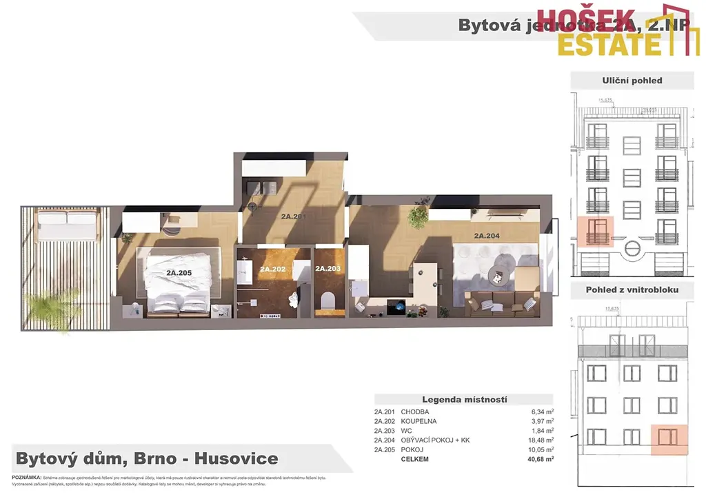 Hošek Estate Vám exkluzivně nabízí nový byt s krásnou terasou v Brně–Husovicích, který bude prodáván formou aukce. Máte tak jedinečnou příležitost získat moderní bydlení v atraktivní lokalitě a zároveň ovlivnit jeho finální cenu. Uvedená cena je cenou vyvolávací, konečná kupní cena bude stanovena v rámci aukce. Byt bude připravený k nastěhování ve třetím kvartálu roku 2026.