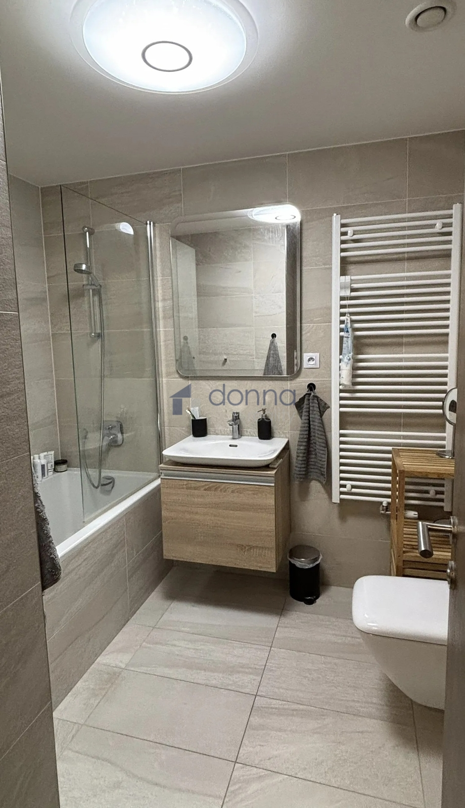V komoře je k dispozici pračka se sušičkou. V koupelně je vana a toaleta.
