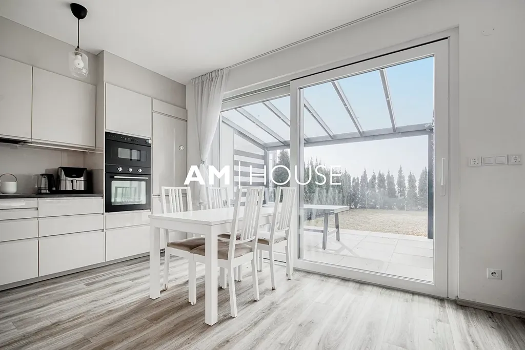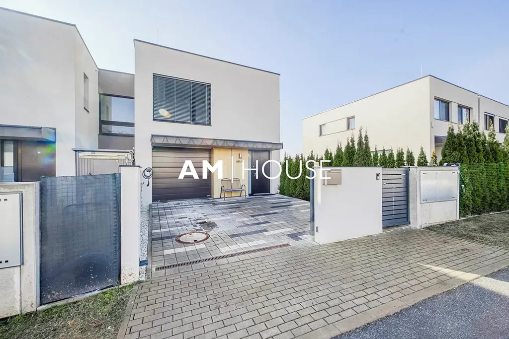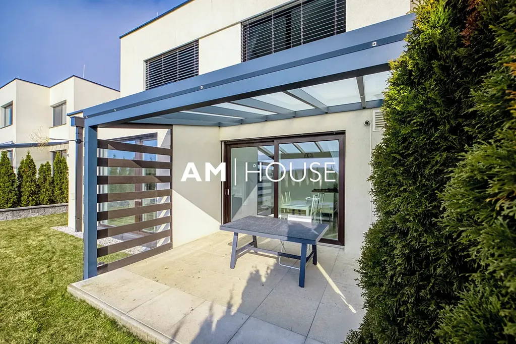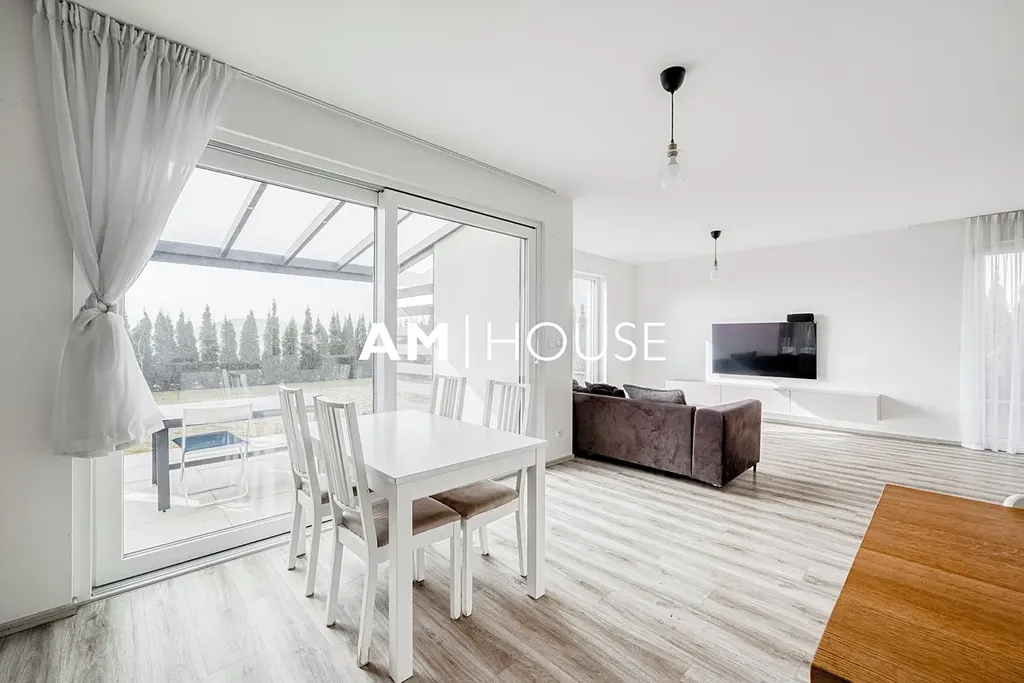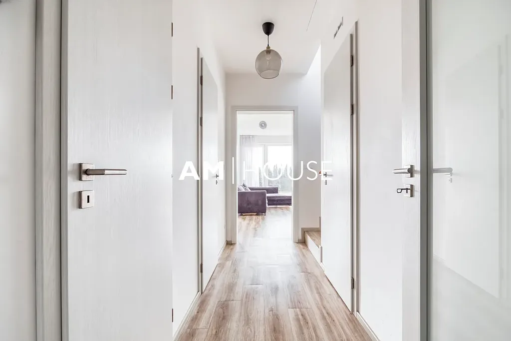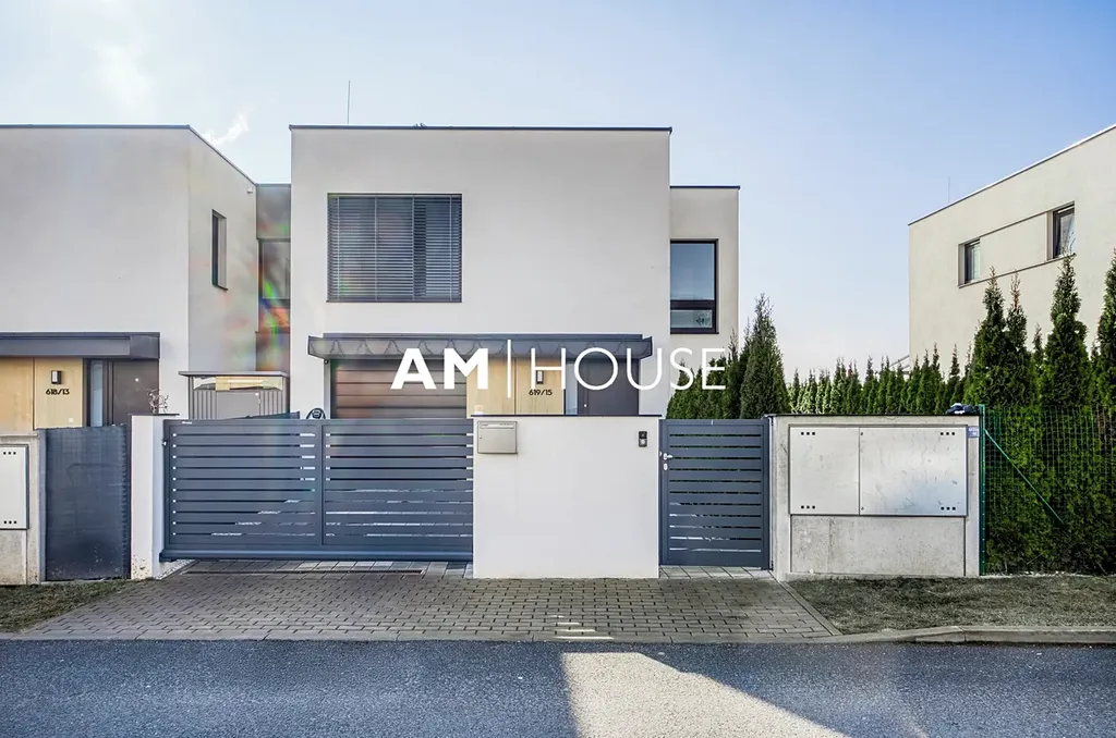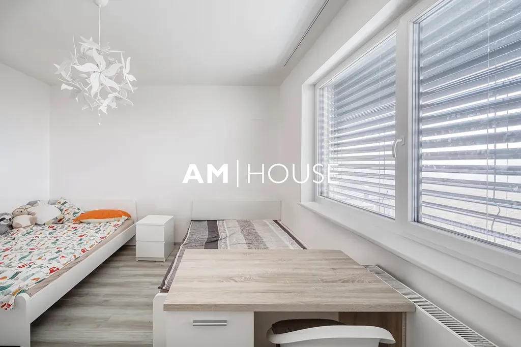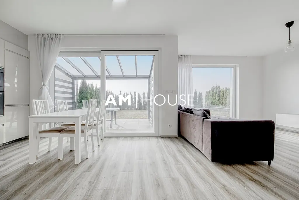 Dům nabízí komfortní rodinné bydlení s důrazem na moderní technologie, energetickou úspornost a praktické řešení prostoru. V přízemí se nachází prostorný obývací pokoj s kuchyňským koutem a přímým vstupem na zahradu, který tvoří přirozené centrum domu. Díky velkým oknům je interiér velmi světlý a příjemně propojený s venkovním prostorem. V patře jsou umístěny tři samostatné ložnice a koupelna, což poskytuje dostatek soukromí pro všechny členy domácnosti.