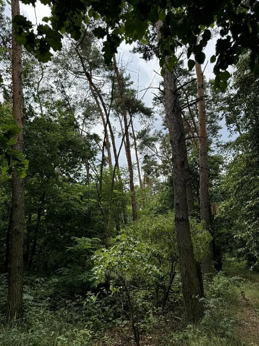 Pozemek je téměř na rovině, pěkný borovicový les (76 let).