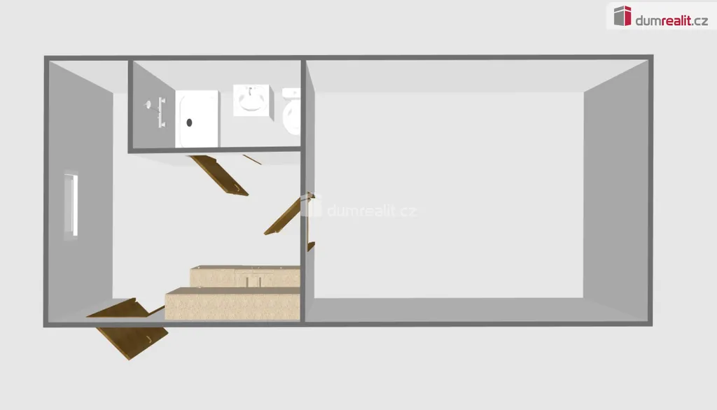 Obývací místnost: Slouží zároveň jako ložnice a obývací pokoj.