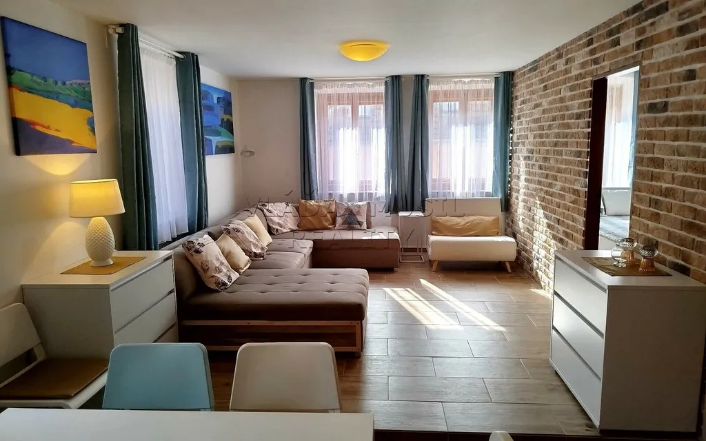 Jde o kompletně zrekonstruovaný byt o celkové rozloze 60 m², který se nachází se v 1. patře (také zrekonstruovaného) cihlového domu. V domě jsou celkem tři byty. Nabízený byt se skládá z předsíně, koupelny s toaletou, velkého obývacího pokoje s kuchyňským a jídelním koutem a samostatné ložnice. Okna jsou špaldová, orientovaná na východ a na jih, interiérové dveře jsou dřevěné, na podlahách je dlažba, v ložnici je plovoucí podlaha. Topení je podlahové, v koupelně je žebříkový radiátor. Topení a teplou vodu zajišťuje tepelné čerpadlo.