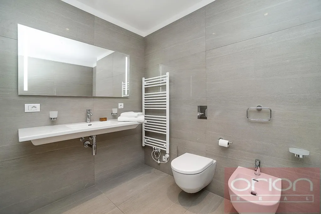 Nabízíme k pronájmu luxusní byt 2+kk s terasou ve 2. patře novostavby Rezidence Ellipsis s recepcí, výtahem, podzemní garáží, wellness - bazén, sauna, a rozlehlou zahradou s parkovou úpravou v lokalitě Praha 5 - Smíchov. Zařízený byt o velikosti 59,38 m2 nabízí vstupní halu, prostorný obývací pokoj otevřený s jídelnou a plně vybavenou kuchyní a se vstupem na terasu (19 m2), ložnici, koupelnu s vanou, sprchovým koutem, bidetem a toaletou. Součástí vybavení jsou dřevěné podlahy, velkoformátová dlažba, francouzská okna, bezpečnostní dveře, klimatizace, internet, sklep. Možnost nájmu garážové stání za poplatek 200 EUR +DPH/měsíc. Oblíbená lokalita Praha 5 - Smíchov s výbornou dopravní dostupností MHD a autem do centra i na letiště. V pěší vzdálenosti na stanici metra a tramvaje Anděl, do nákupního centra Nový Smíchov, do mezinárodních škol. V blízkém okolí je spousta zeleně, Kinského sady, Petřínské sady. Nájem 2.200 EUR + 12%DPH splatný v EUR + členský poplatek za využití wellness 100 EUR/měsíc. Nájemné zahrnuje energie, služby, internet a 2xměsíčně úklid bytu. V přízemí budovy se rovněž nachází fitness centrum Prisma Institut.