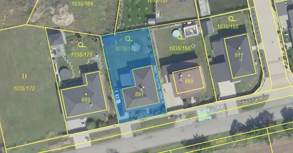 Daná nemovitost s č.p 557 je postavená na pozemku č. 891, 132 m2 - zastavěná plocha a nádvoří, parcela č. 1035/170 - zahrada o rozloze 416 m2, vše v katastrálním území Kounice, obec Kounice.