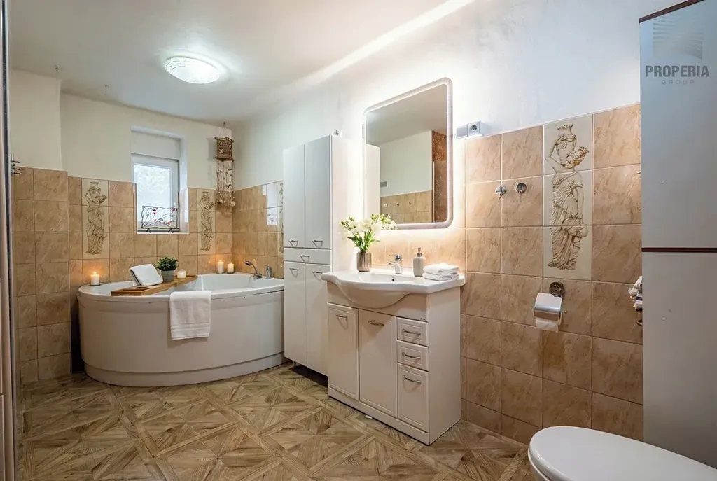 Prostorná koupelna: 10,15 m² s vanou i sprchovým koutem
