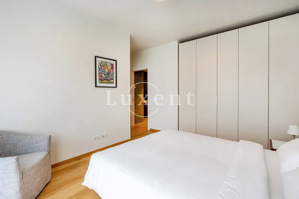 Nabízíme k pronájmu kompletně zařízený byt 2+kk o užitné ploše 78 m² s terasou ve třetím podlaží novostavby rezidenčního projektu s výtahem a množstvím nadstandardních doplňkových služeb jako je recepce, bazén, wellness a rozlehlá společná zahrada v uzavřeném vnitrobloku. Za příplatek lze pronajmout parkovací stání v podzemních garážích.