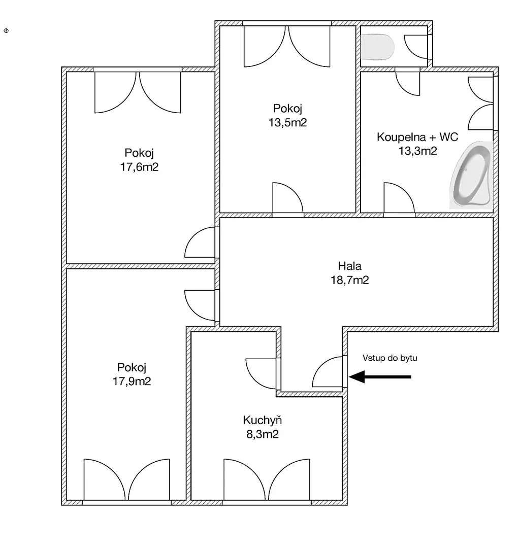 Tento byt doporučujeme všem, kteří hledají prostorné městské bydlení v jedinečné lokalitě s atmosférou klidné vilové čtvrti a zároveň s výbornou dostupností do centra.