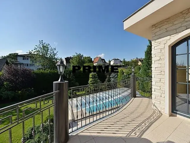 Exkluzivní, elegantní, prostorná, 6 ložnicová, nezařízená vila s 5 koupelnami k pronájmu, 8+1, 560m2, s dvougaráží, velkou zahradou a venkovním bazénem.