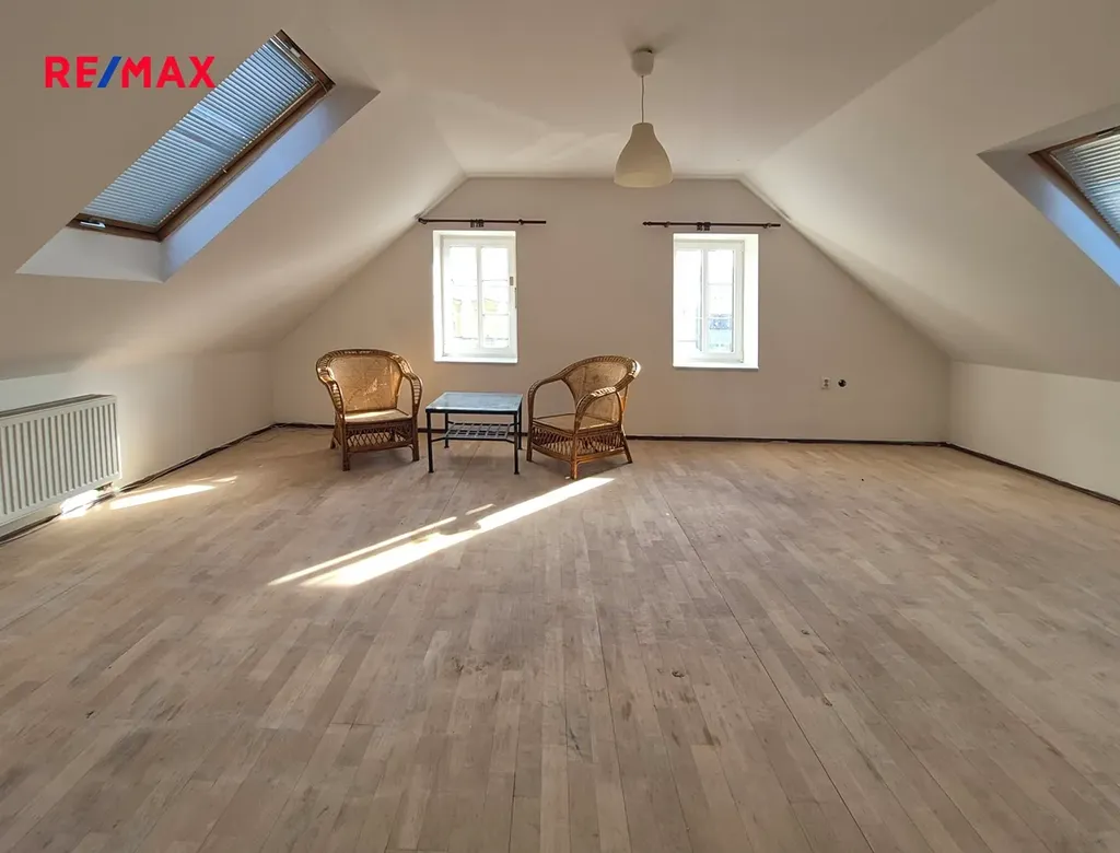 Nabízím k pronájmu prostorný podkrovní byt 5+1 o celkové výměře 152 m2, nacházející se ve 3.NP cihlového historického domu přímo na náměstí Míru ve Svitavách.