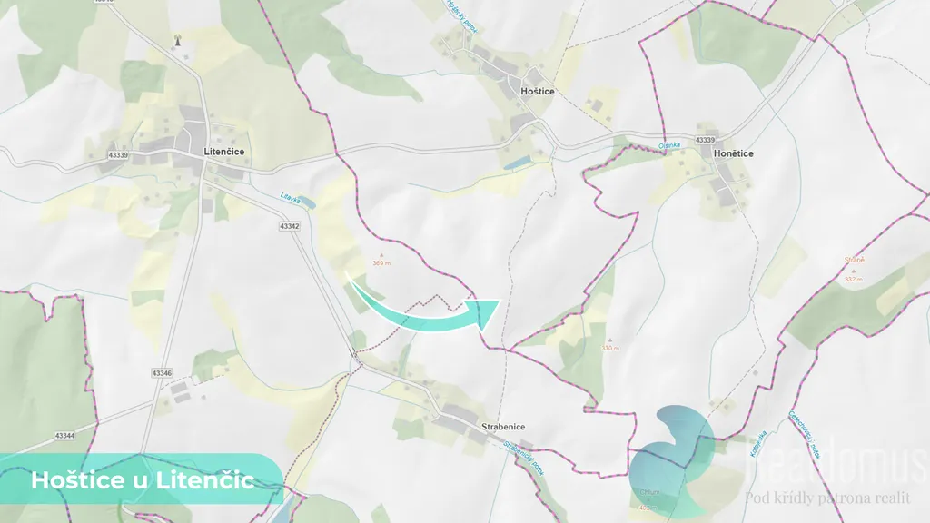 Pozemek se nachází v klidné zemědělské oblasti mezi obcemi Hoštice a Strabenice, s přístupem po polní cestě.