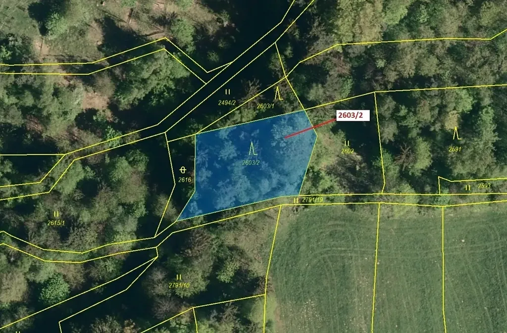 Lesní pozemek o výměře 1036 m2, parcelní číslo 2603/2, podíl 1/1, katastrální území Zděchov, obec Zděchov, obec s rozšířenou působností Vsetín, okres Vsetín, Zlínský kraj.