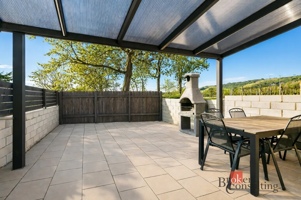 Před apartmánem se nachází terasa s pergolou a grilem s krásným výhledem na okolní vinohrady.