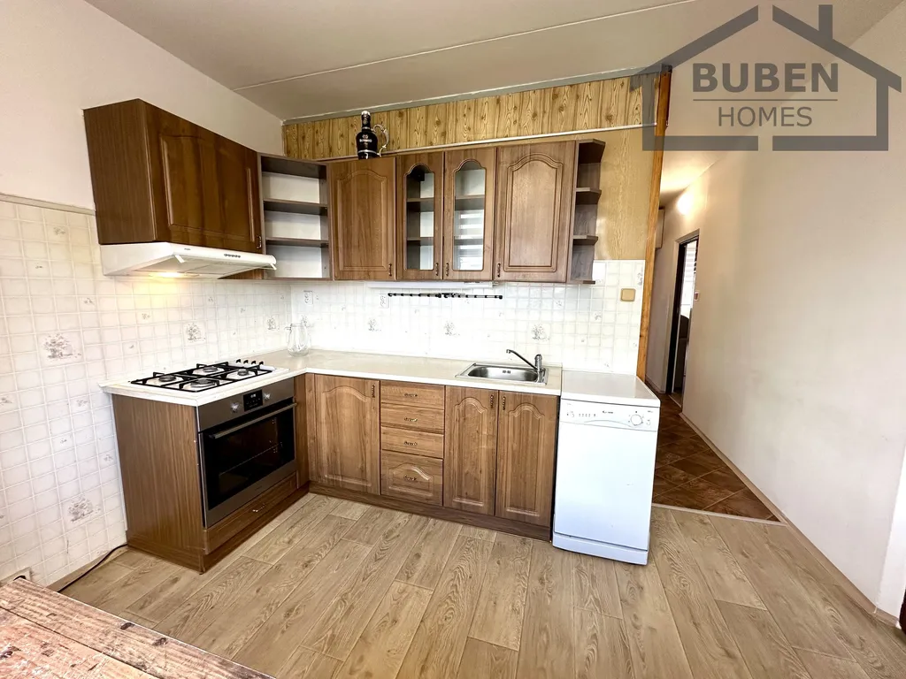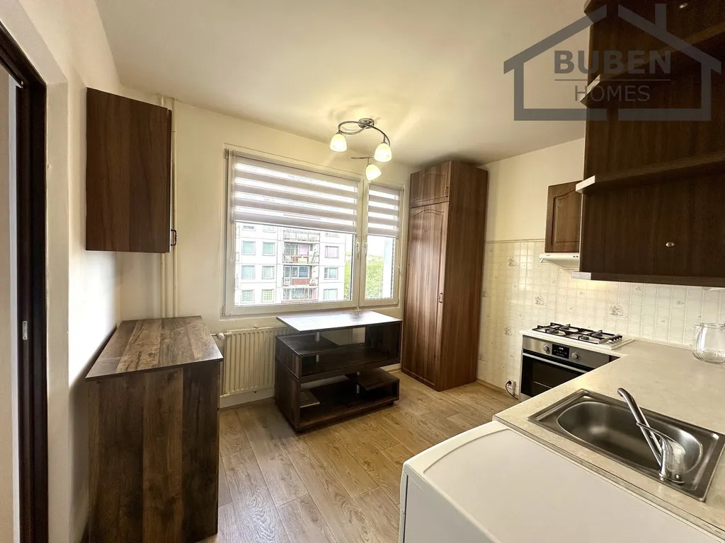 V ceně je zahrnutá kuchyňská linka se sporákem, horkovzdušnou troubou a digestoří dále vybavení bytu (viz. foto).