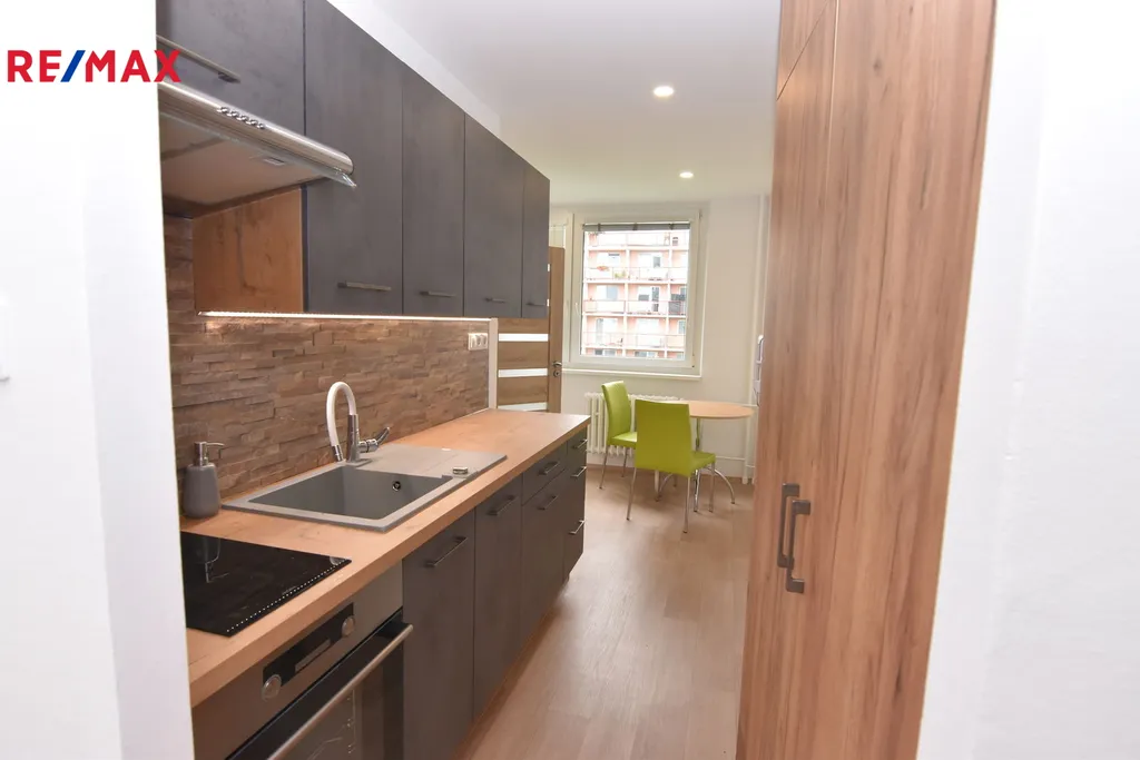 Nabízíme k pronájmu byt po rekonstrukci 2+1, 56 m2 na ulici Hraniční v Olomouci kousek od FN a obchodního centra. VOLNÝ OD ČERVNA 2026. Byt je vhodný pro maximálně dvě pracující osoby a nachází se ve 3. NP s výtahem. Do bytu se vchází chodbičkou a po levé straně je samostatné WC, dále kuchyně s jídelním koutem na kterou navazuje koupelna se sprchovým koutem vybavená pračkou a sušičkou. Komora je ve střední části chodby. Vlevo obývací pokoj a na pravé straně ložnice s lodžií. Byt má plastová okna, žaluzie, podlahy PVC, keramika a nové koberce. Wifi se připočítává k ceně nájmu - 300,- Kč. Vybavení bytu - veškerý nábytek dle fotek, pračka a sušička, lednička s mrazákem, mikrovlnná trouba, varná konev.