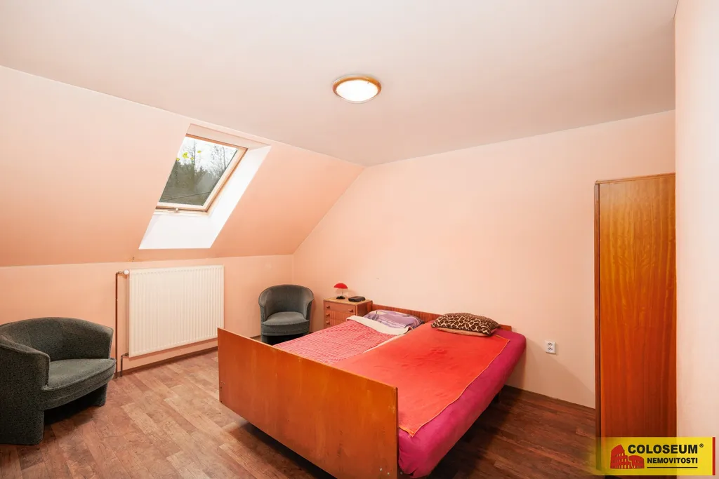 Podkroví: dva samostatné pokoje a koupelna.