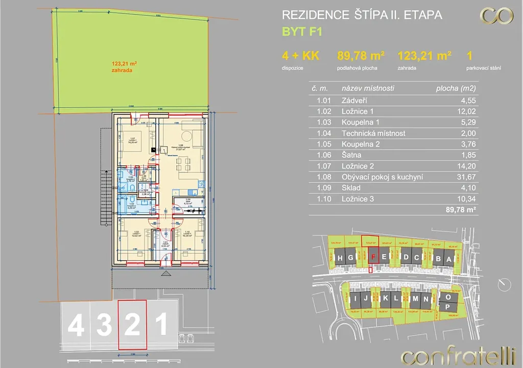 Moderní byt 4+kk se zahrádkou ve Zlíně – Štípě označený jako F1