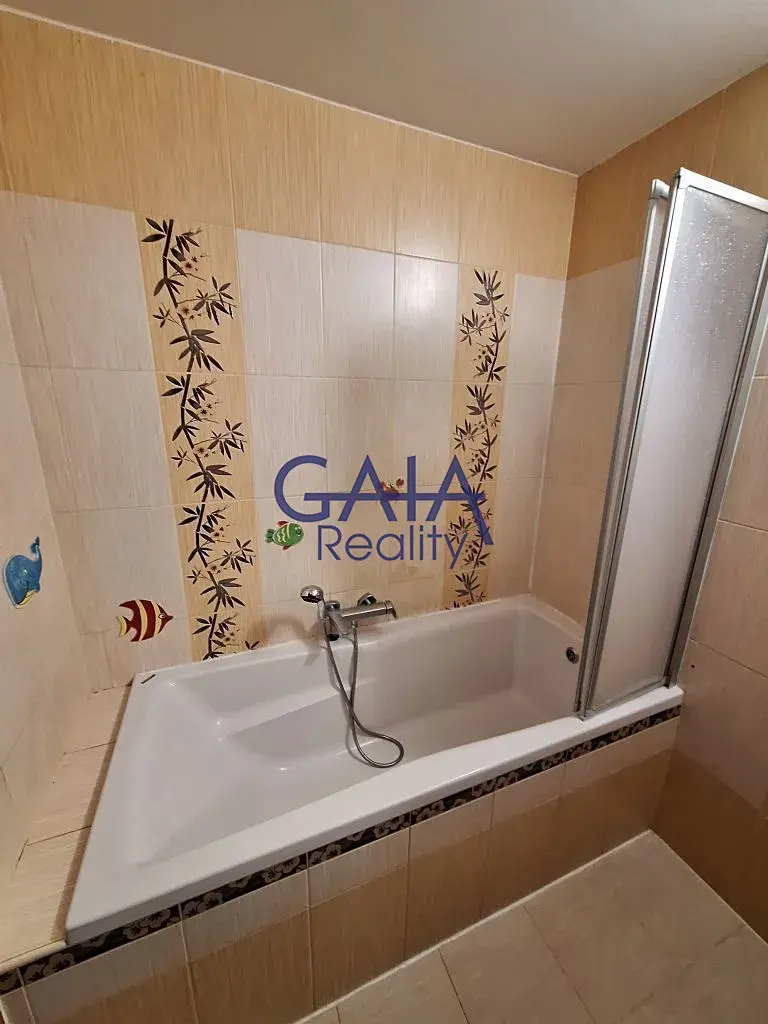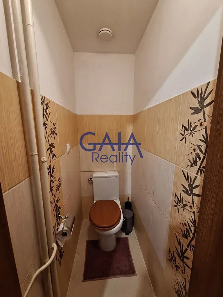 Koupelna je vybavena vanou a koupelnovým nábytkem, toaleta je samostatná.