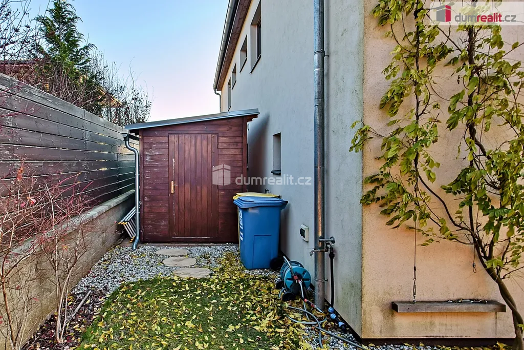 Prodej rodinného domu o dispozici 4+kk, s krásnou zahradním architektem navrženou zahradou, na které se nachází jak zastřešené posezení pro větší rodinu, tak okrasnou zahradu, která je pohledově z obývacího pokoje. Dále dvě parkovací stání za dálkově ovládanými vraty, tak i za domem dřevěný domek pro zahradní nábytek a potřeby na zahradu. Dům je velmi dobře architektonicky řešený, s mnoha vynikajícími detaily, které tento dům dělá velmi osobní a unikátní. V přízemí domu se nachází předsíň, ze které se jde dále do obývacího poje s kuchyňským koutem, dále do koupelny se sprchovým koutem a WC, a technické místnosti ve které se nachází elektrický kotel, pračka se sušičkou a dostatkem prostoru pro úklidové prostředky. Po schodech, které neprochází žádnou místností, tudíž jsou nerušící, mají zajímavé podsvětlení, se jde do patra, kde se nachází velká koupelna s vanou a WC, prostorná šatna, kterou jistě oceníte, dále tři samostatné pokoje. Celý dům působí vzdušně a prostorně, i díky zajímavým osvětlením, členěním a praktičností. Orientace domu je na jih, západ a sever. Obývací pokoj s kuchyňským koutem a dále dva pokoje v patře jsou na jih, jeden pokoj v patře je na západ a koupelny a technická místnost jsou na sever. Hezký je výhled z obývacího pokoje na krásnou udržovanou zahradu, se zabudovanou automatickou závlahou. Tento dům Vám opravdu doporučujeme, je velmi praktický a dělaný se vkusem. Ev. číslo: 655019.
