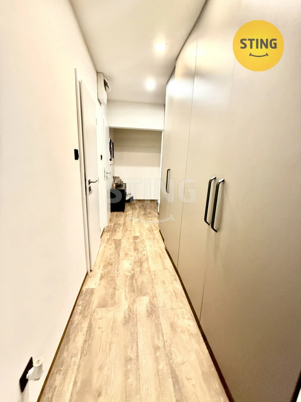Byt je po rekonstrukci a disponuje moderní kuchyňskou linkou včetně vestavěných spotřebičů (varná indukční deska, elektrická trouba, digestoř, myčka na nádobí. Koupelna je vybavena sprchovým koutem, WC je samostatné. V předsíni se nachází velké vestavěné skříně, které poskytují dostatek úložného prostoru.
