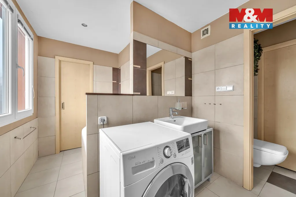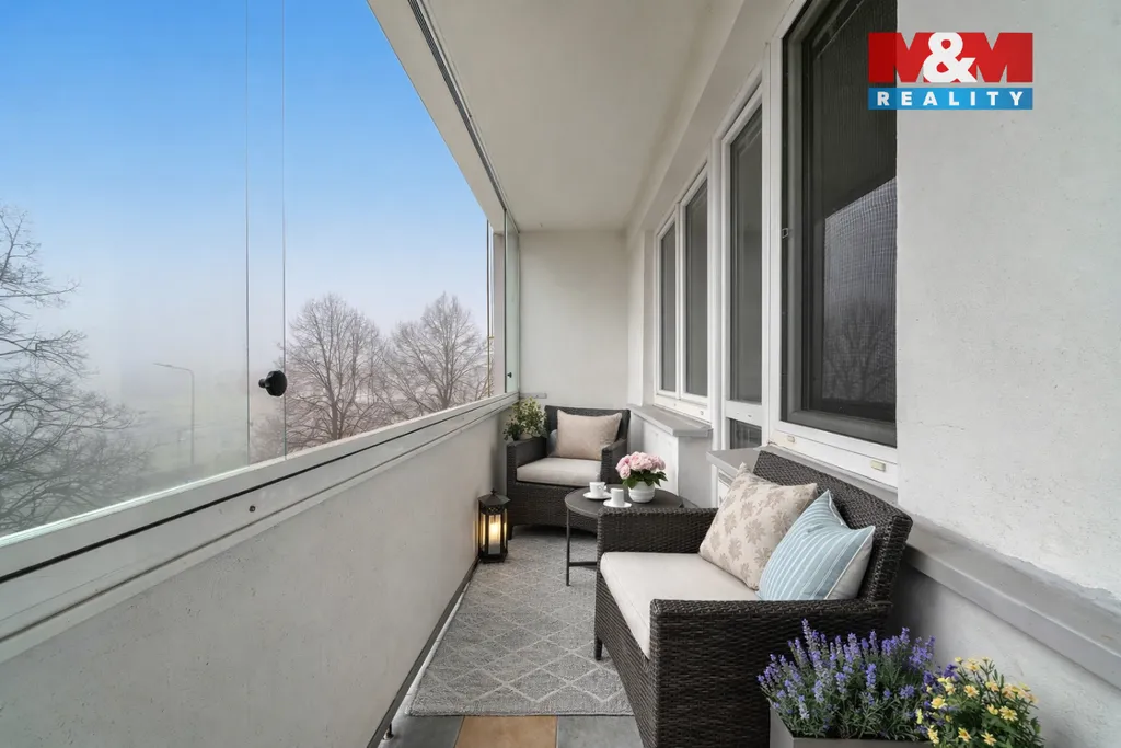 Velkou výhodou bytu jsou dvě zasklené lodžie. První lodžie vede podél obývacího pokoje a ložnice, druhá je rovněž zasklená a je přístupná z koupelny, která tak nabízí i příjemné denní světlo.