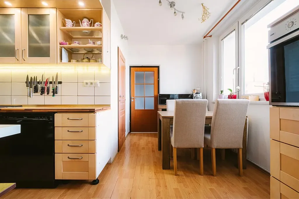 Byt disponuje vstupní chodbou se skříní, samostatným WC, koupelnou s vanou, kuchyňskou linkou se spotřebiči, obývacím pokojem, ložnicí, dětským pokojem a technickou místností. K bytu patří také komora, která se nachází na stejném patře jako byt. Součástí bytu je i sklep v přízemí domu. V bytě je plovoucí podlaha, dlažba a koberce. Poslední rekonstrukce proběhla v roce 2011, zděné jádro, nová koupelna, toaleta a kuchyň. Celý dům prošel revitalizací v roce 2010. Nová fasáda, zateplení, nová okna, vstupní dveře, výtah. Vytápění bytu i ohřev vody je zajištěn dálkově z centrální kotelny. Energetická náročnost budovy je C. Měsíční náklady na bydlení jsou cca 7 500 Kč.