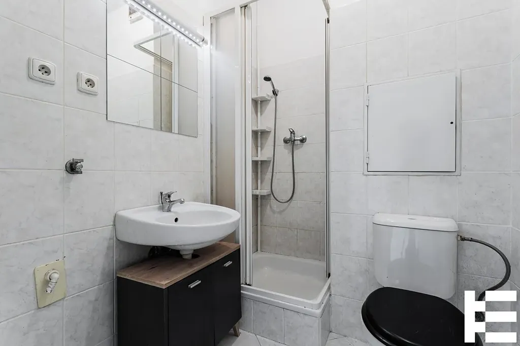 Čisté a praktické zázemí: Koupelna se sprchovým koutem a světlými obklady působí velmi příjemně. Vstupní chodba s bytelnými bezpečnostními dveřmi se postará o váš pocit absolutního bezpečí.