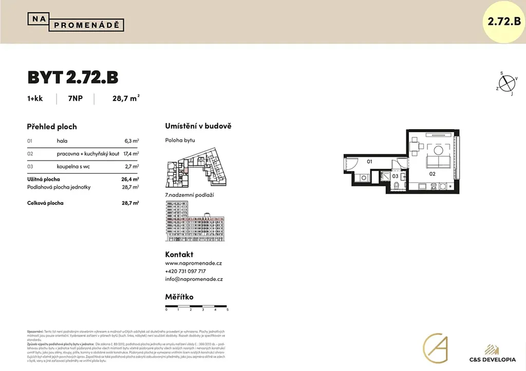 Bytová jednotka s projektovým označením 2.72.B o dispozici 1+kk a velikosti podlahové plochy 28,7 m2 se nachází v 7. nadzemním podlaží jednoho z elegantních bytových domů projektu. Dokončení projektu je plánováno na 3. čtvrtletí roku 2027. Bytové domy budou postaveny jako energeticky úsporné. Součástí standardu jsou trojitá izolační skla, která zajistí skvělou tepelnou i zvukovou izolaci a tím i maximální pocit klidu a soukromí.