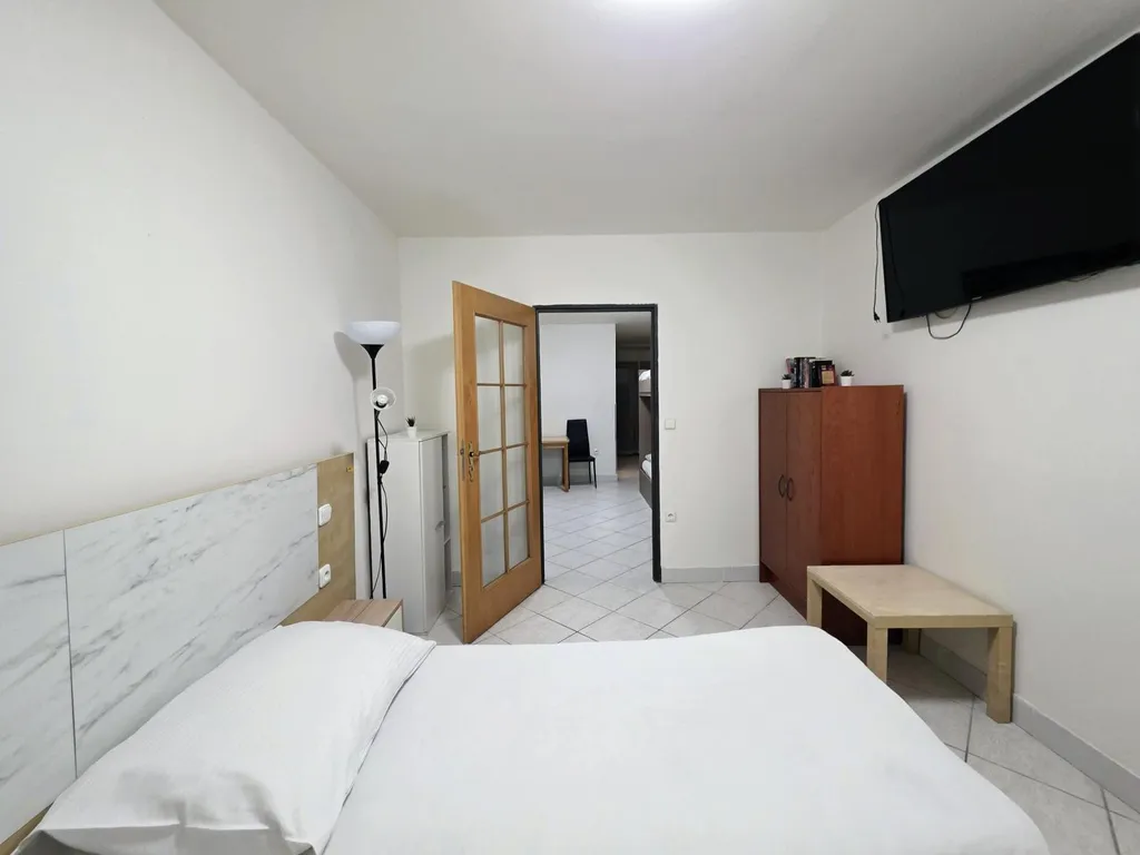Byt je plně vybavený nábytkem a spotřebiči a je připravený k okamžitému nastěhování.