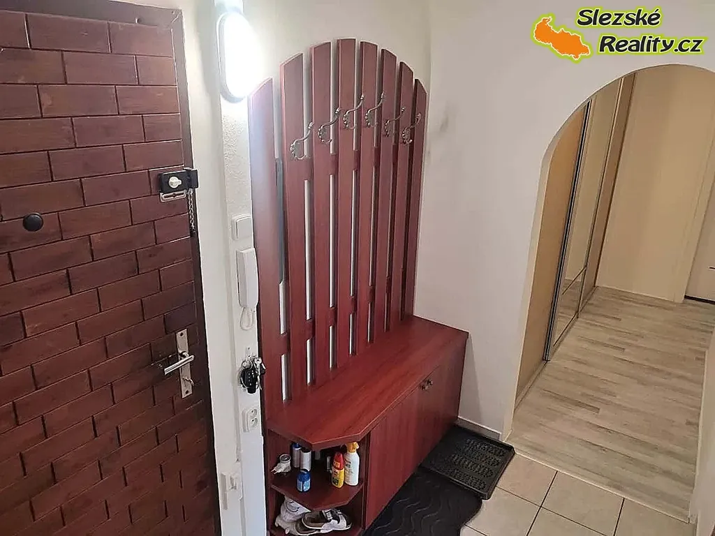 V bytě se nachází i komora s regálem, která poskytne další místo pro věci, které chcete mít po ruce, ale ne nutně na očích.