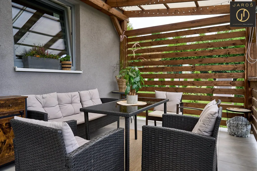 Celý dům je postaven z ytongu, Má šedá plastová okna s trojsklem, vnitřní žaluzie den a noc. Přehled o okolí domu Vám zajistí kamerový systém se záznamem.