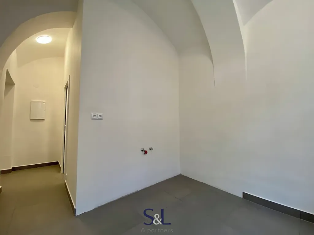 Prostor po kompletní rekonstrukci o výměře 16 m2 se nachází v přízemí cihlového domu v řadové zástavbě. Ideální pro využití jako malé kanceláře. Vybaven je sprchovým koutem a toaletou. Vytápění je zajištěné pomocí tepelného čerpadla.