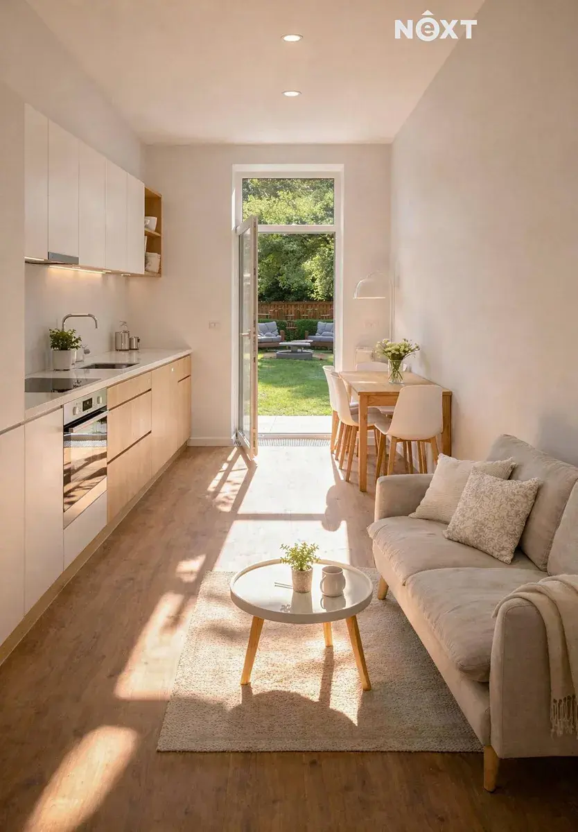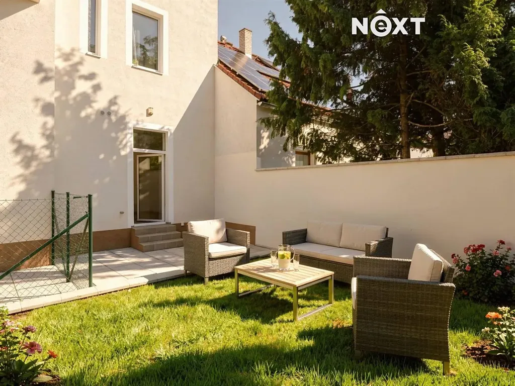Úžasným bonusem tohoto bytu je výhradní užívání oplocené zahrady s dlážděnou terasou ve vnitrobloku domu, která je ideální pro relaxaci nebo setkání s rodinou a přáteli.